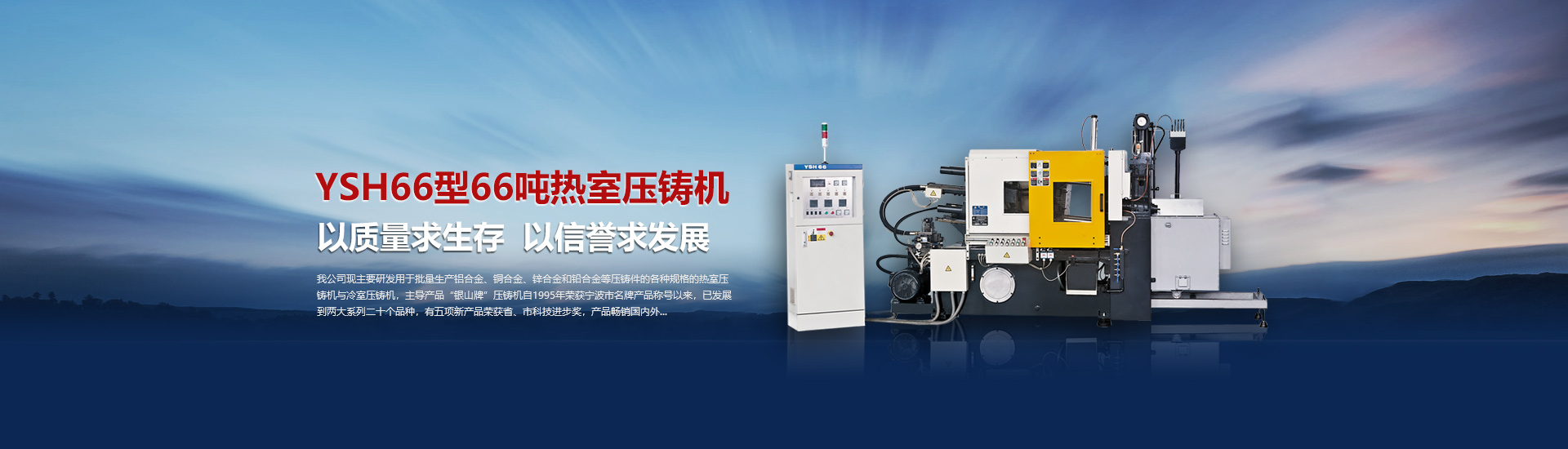 我司現(xiàn)主要研發(fā)用于批量加工生產(chǎn)鋁合金、銅合金、鋅合金和鉛合金等壓鑄件的各種型號規(guī)格的熱室/冷室壓鑄機(jī),主導(dǎo)產(chǎn)品“銀山牌”壓鑄機(jī)自1995年榮獲寧波市名牌產(chǎn)品稱號以來,已發(fā)展到兩大系列二十個(gè)品種,有五項(xiàng)產(chǎn)品曾榮獲省、市科技進(jìn)步獎(jiǎng),產(chǎn)品暢銷國內(nèi)外。歷年來向用戶提供了8000余臺設(shè)備,為中國的壓鑄工業(yè)發(fā)展作出了重要的貢獻(xiàn),企業(yè)獲得了很高的信譽(yù)度。